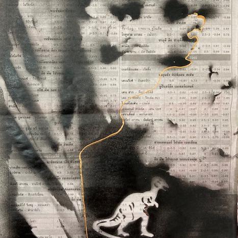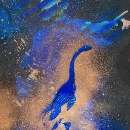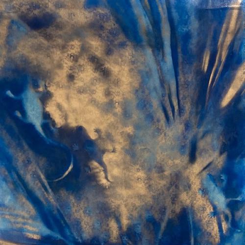 Gecko,, technique mixte sur tissu, 120 x 120 cm