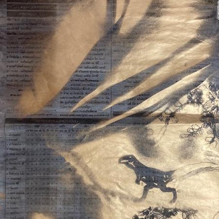 Gecko,, technique mixte sur tissu, 120 x 120 cm